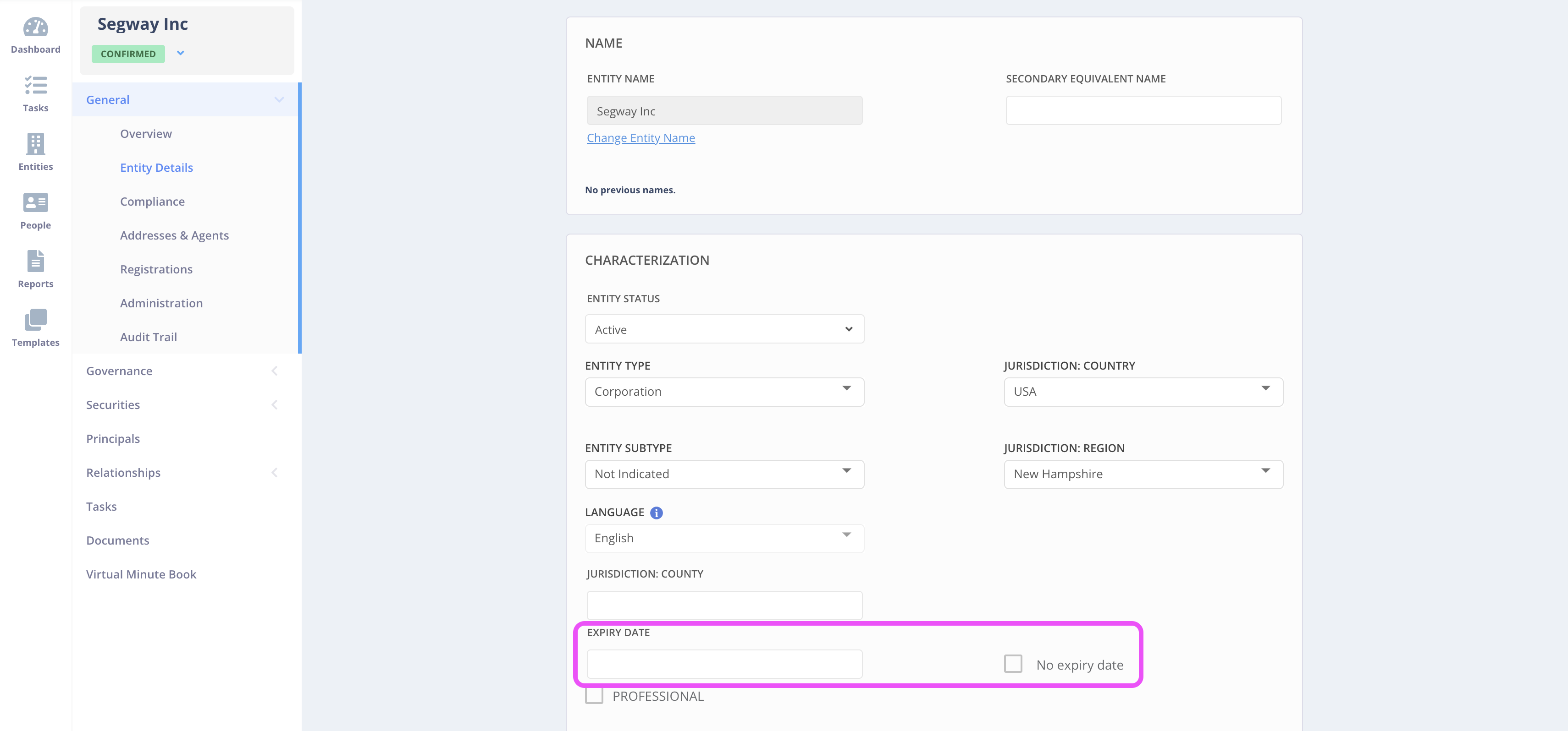 You can now enter an expiry date for the Home Jurisdiction of an entity regardless of entity type. The Expiry Date field remains where it has always been for partnerships and for all other entity types you can find it in the Characterization section of Entity Details.