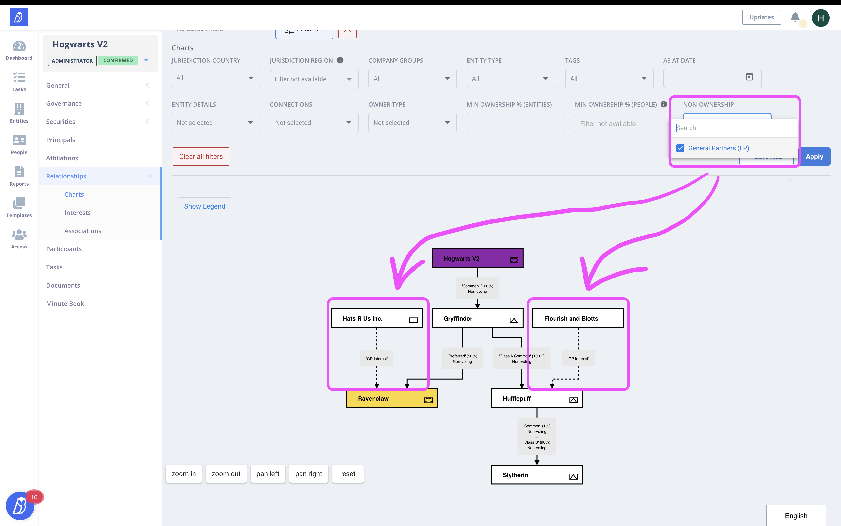 With this week's release, we’ve added a new option to show General Partners in Limited Partnerships through filtering in structure charts. Users will be able to show a more complete picture of beneficial ownership by representing General Partners in Limited Partnerships who may or may not be owners, but with their role as GP, still have significant interest in an entity.