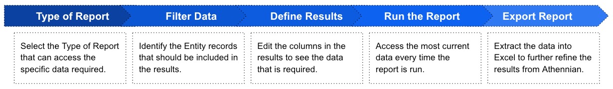 With all Entity information centralized in Athennian, the Reports feature can be used to summarize that data, across multiple Entities all in one Report.