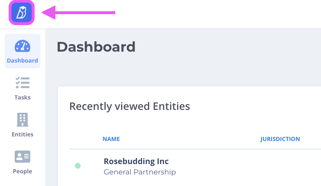 Typically, on a website, clicking the company logo will take you to the home page. To maintain consistency with general practices and help you find what you're looking for faster, the company logo located in the top left of the application now brings you to the Dashboard.