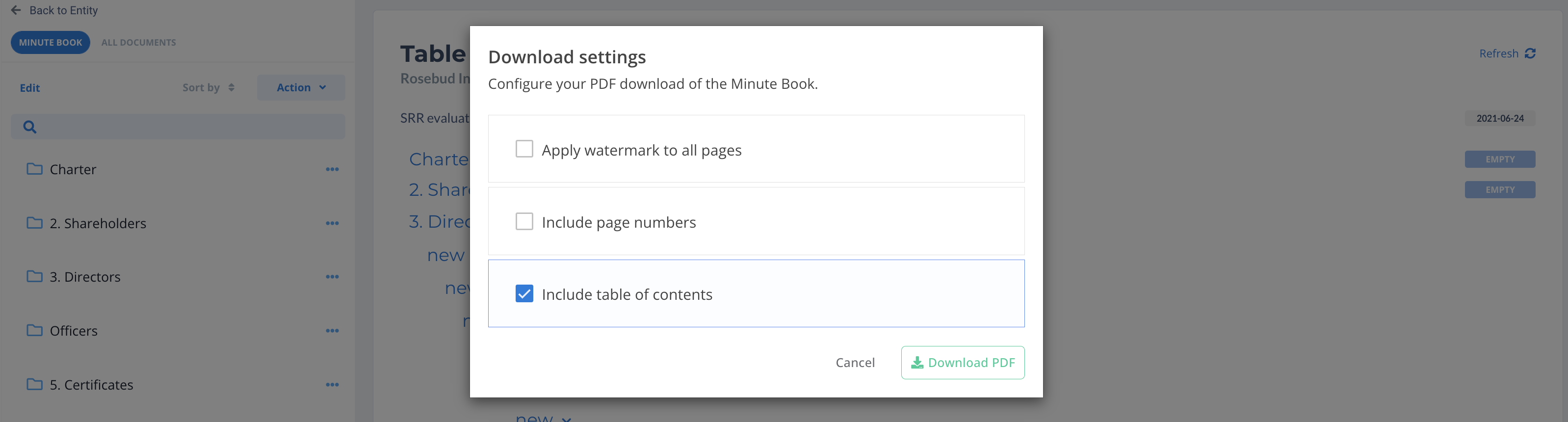 Table of Contents is optional in Virtual Minute Book (VMB)